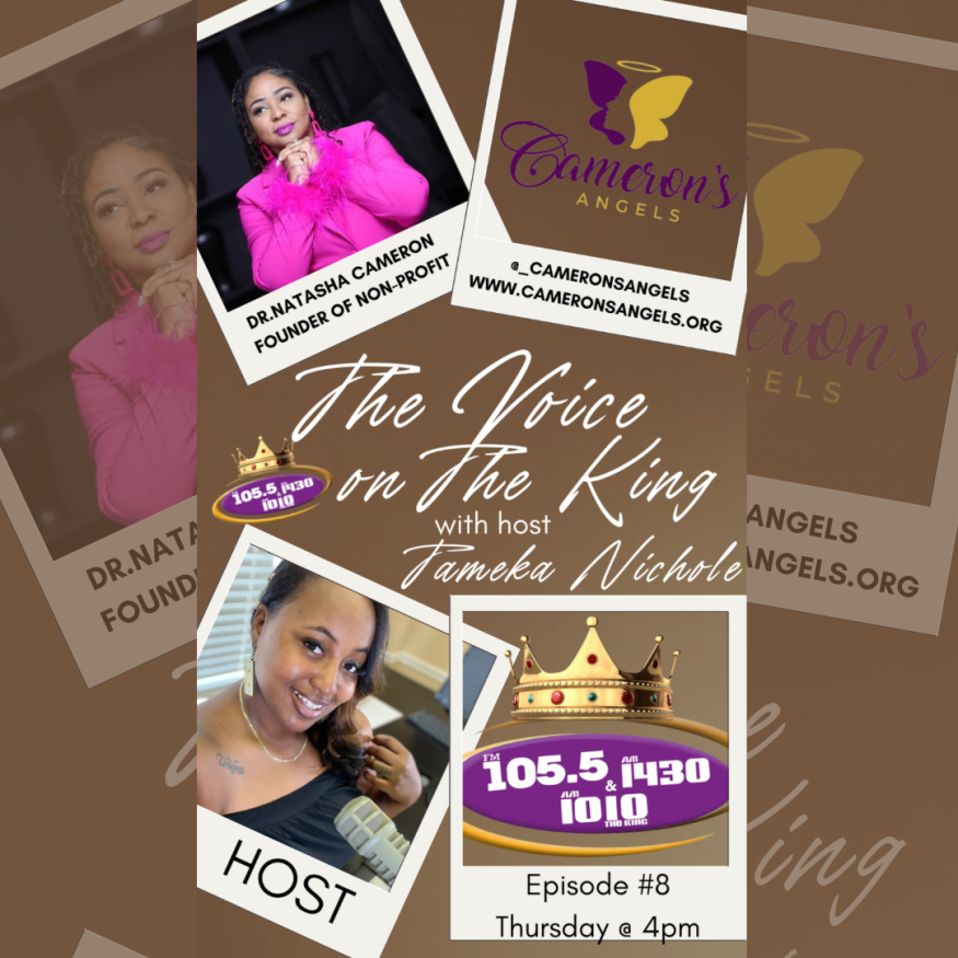 THURSDAY 12.05.24 at 4PM on #TheVoiceOnTheKing @TamekaNichole @YourBeautyEntertainer GIVES VOICE to @iamnatashacameron Founder of @_cameronsangels we discuss Dr. Natasha’s passion for her Non Profit and its Purpose and then shed light on her Event this Sunday, The Gift of Sisterhood Brunch Finale, DERBY EXPERIENCE!