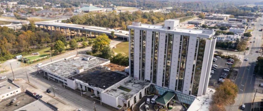 The old Ramada Hotel in Macon, GA was a staple in the city's downtown skyline but fell into despair. The hotel was demolished on New Years Day and many gathered to watch.