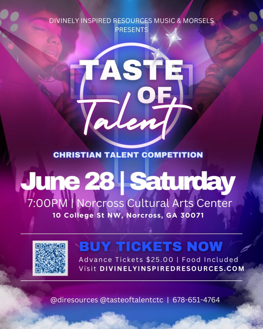 Taste of Talent: Christian Talent Competition returns to the Norcross Cultural Arts Center on June 28, 2025 at 7:00pm!✝️