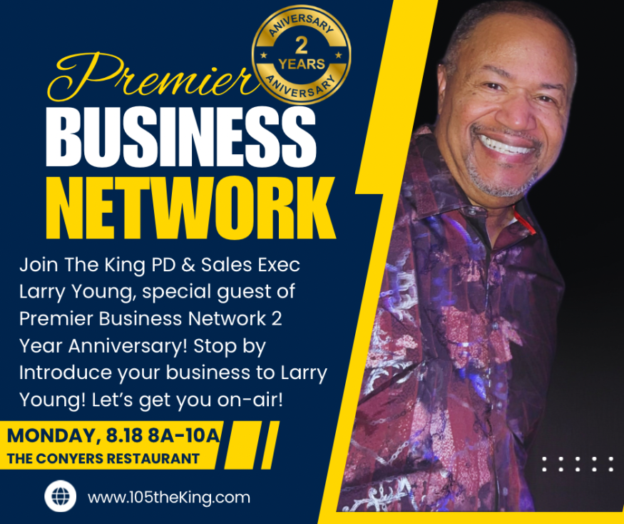 Join Larry Young of The King Radio Stations as he broadcasts on 105.5 FM Live from Premiere Business Network 2yr Anniversary event!