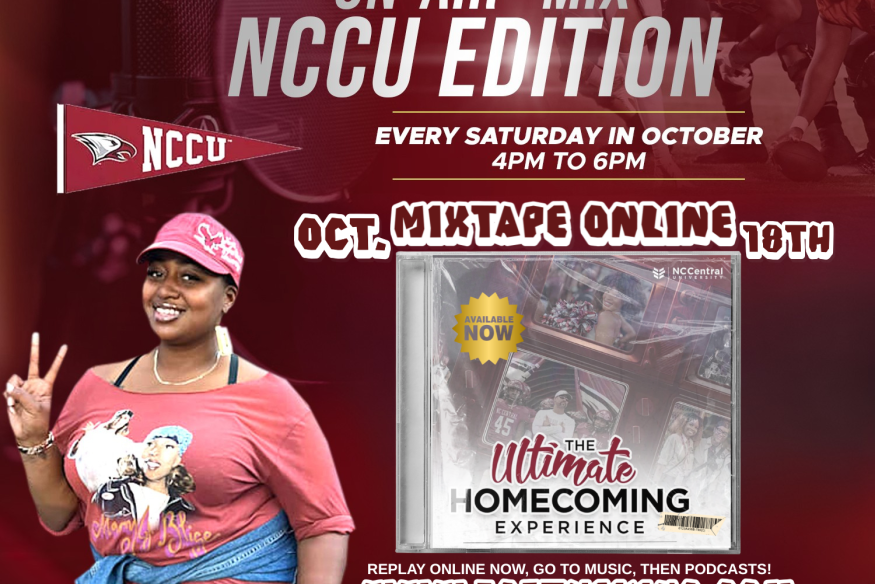 A two-hour musical journey celebrating the spirit, energy, and legacy of North Carolina Central University. This exclusive mix created by Tameka Nichole, NCCU Alumnae, Class of 2007, brings together the sounds that defined the campus experience for NCCU graduates across the years—an unforgettable blend of R&B, hip-hop, soul, and party anthems that filled dorm rooms, tailgates, and homecoming nights.